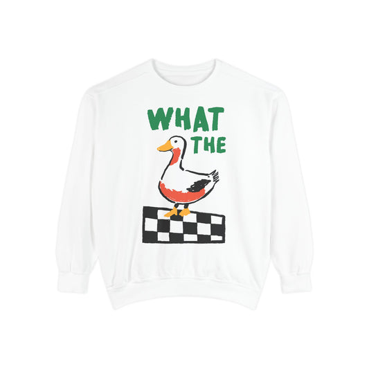 What The Duck Comfort Colors Crewneck in Chambray | Funny Oversized Graphic Sweatshirt for Women – Vintage Wash Boutique Pullover