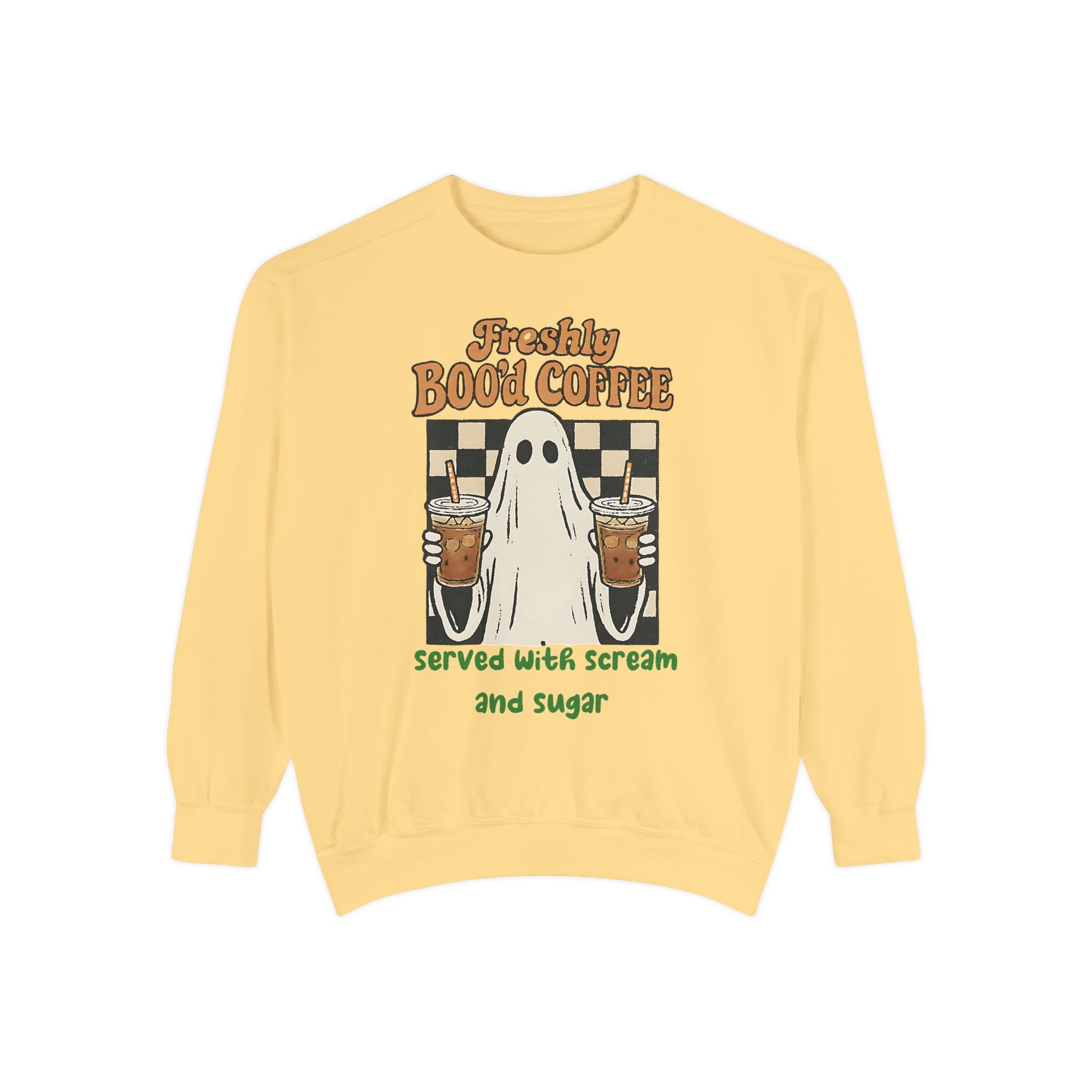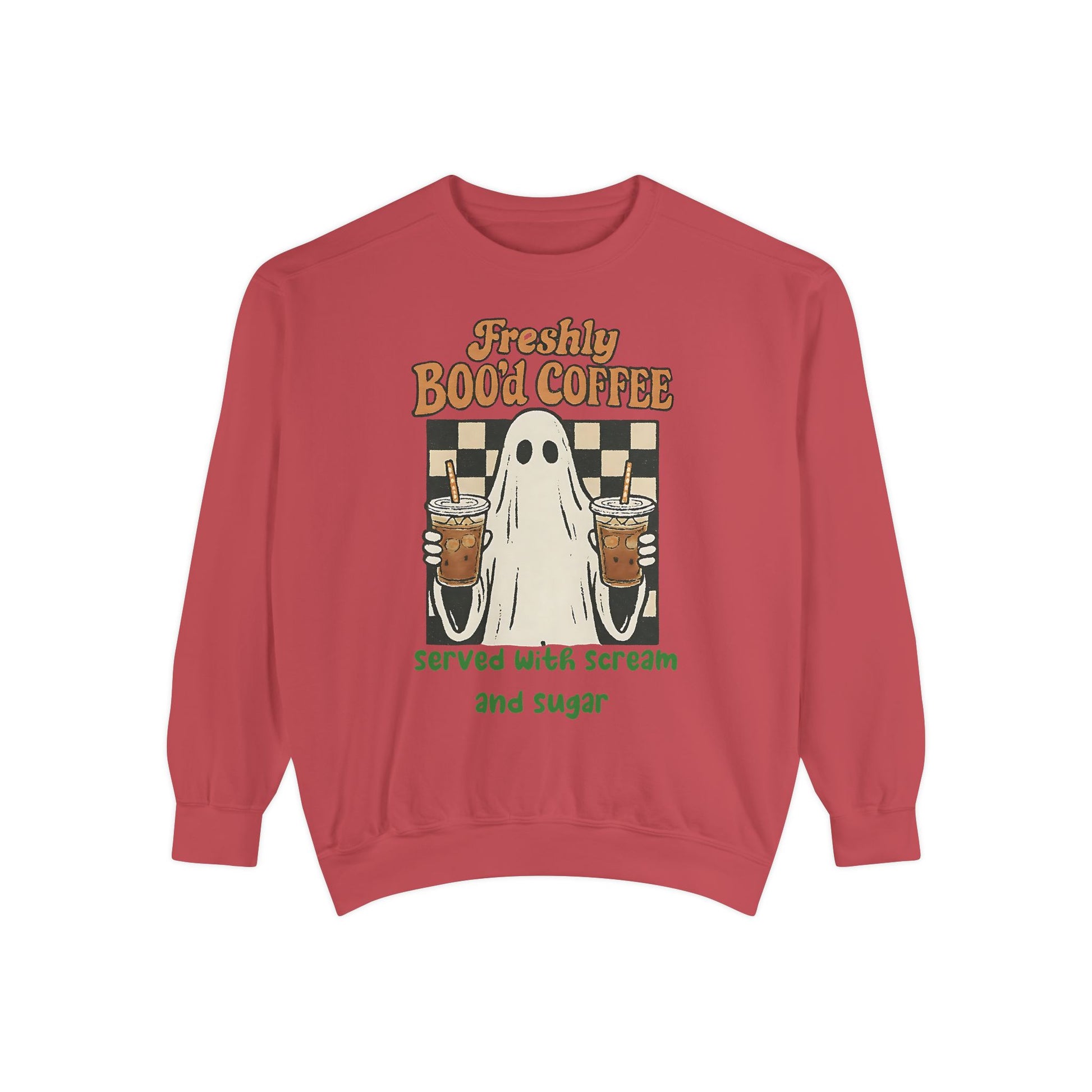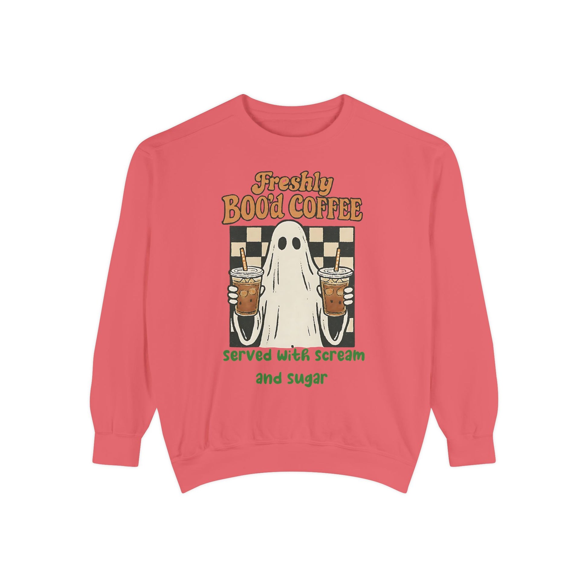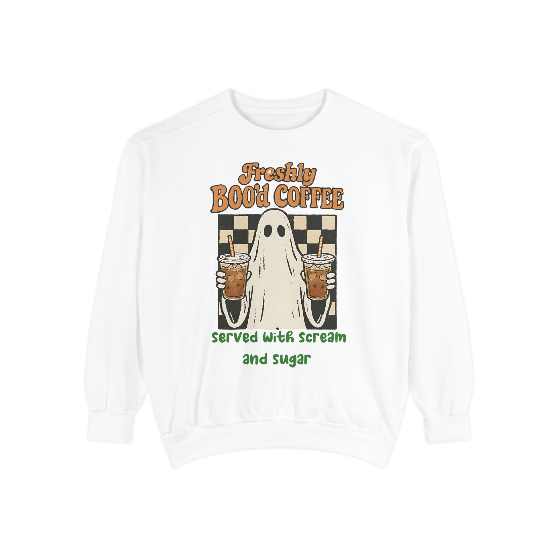 Freshly Boo’d Coffee Comfort Colors® Sweatshirt – Halloween Ghost Coffee Lover Oversized Crewneck