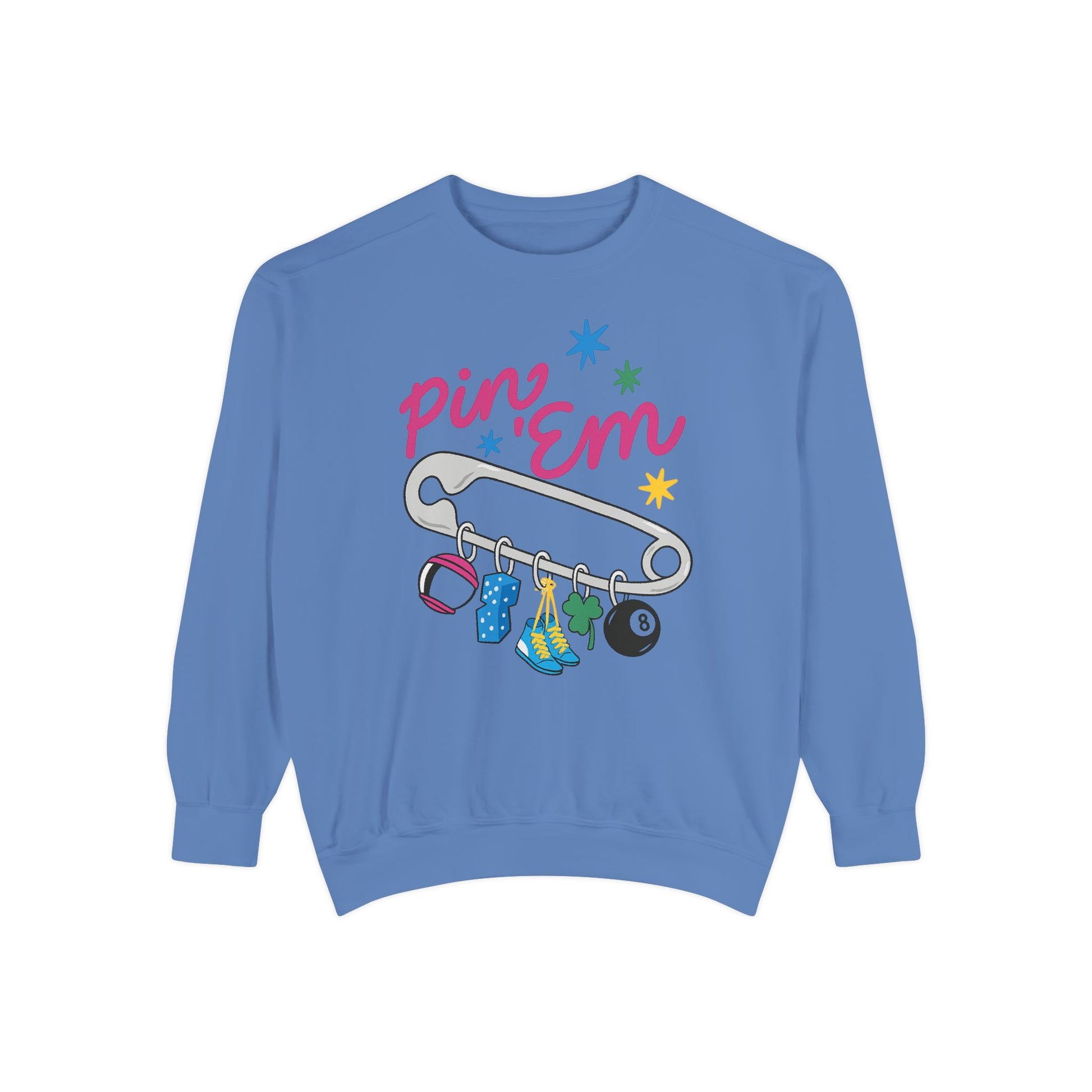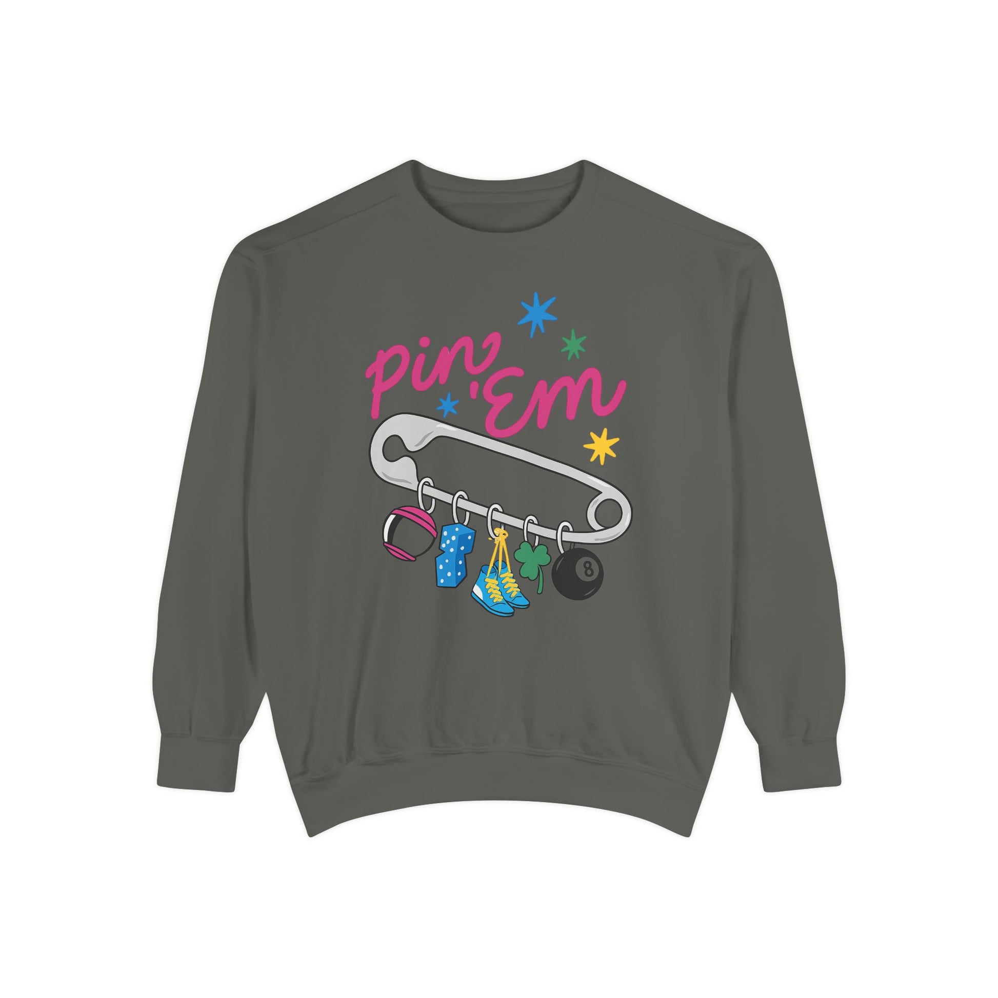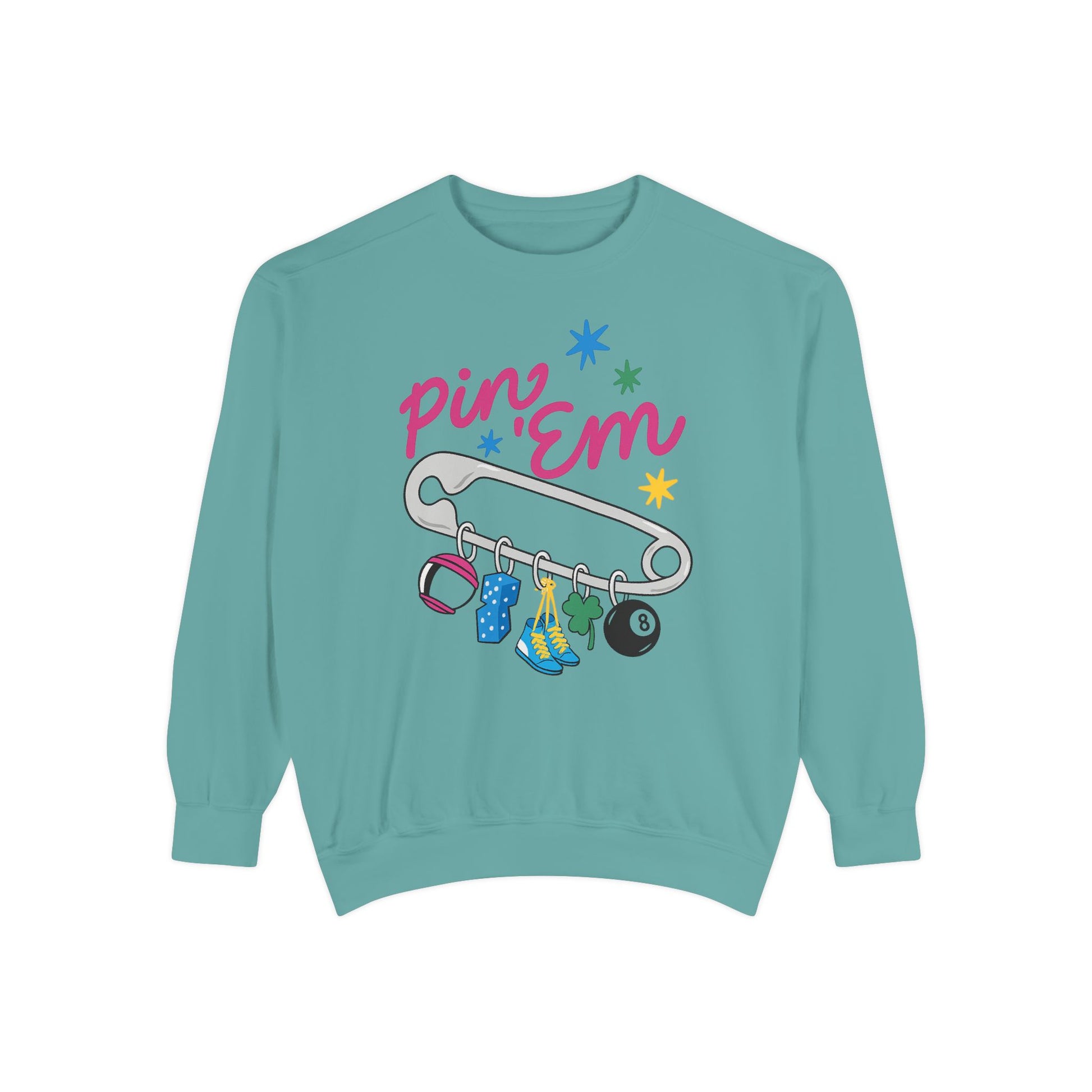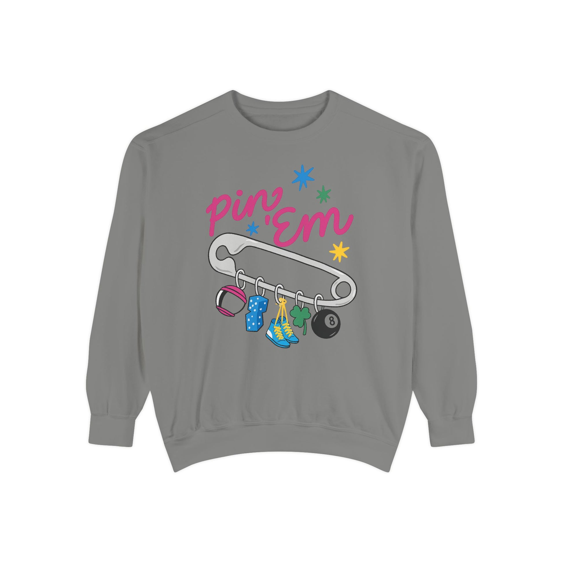 Pin ’Em Comfort Colors® Sweatshirt – Retro Safety Pin Charm Crewneck